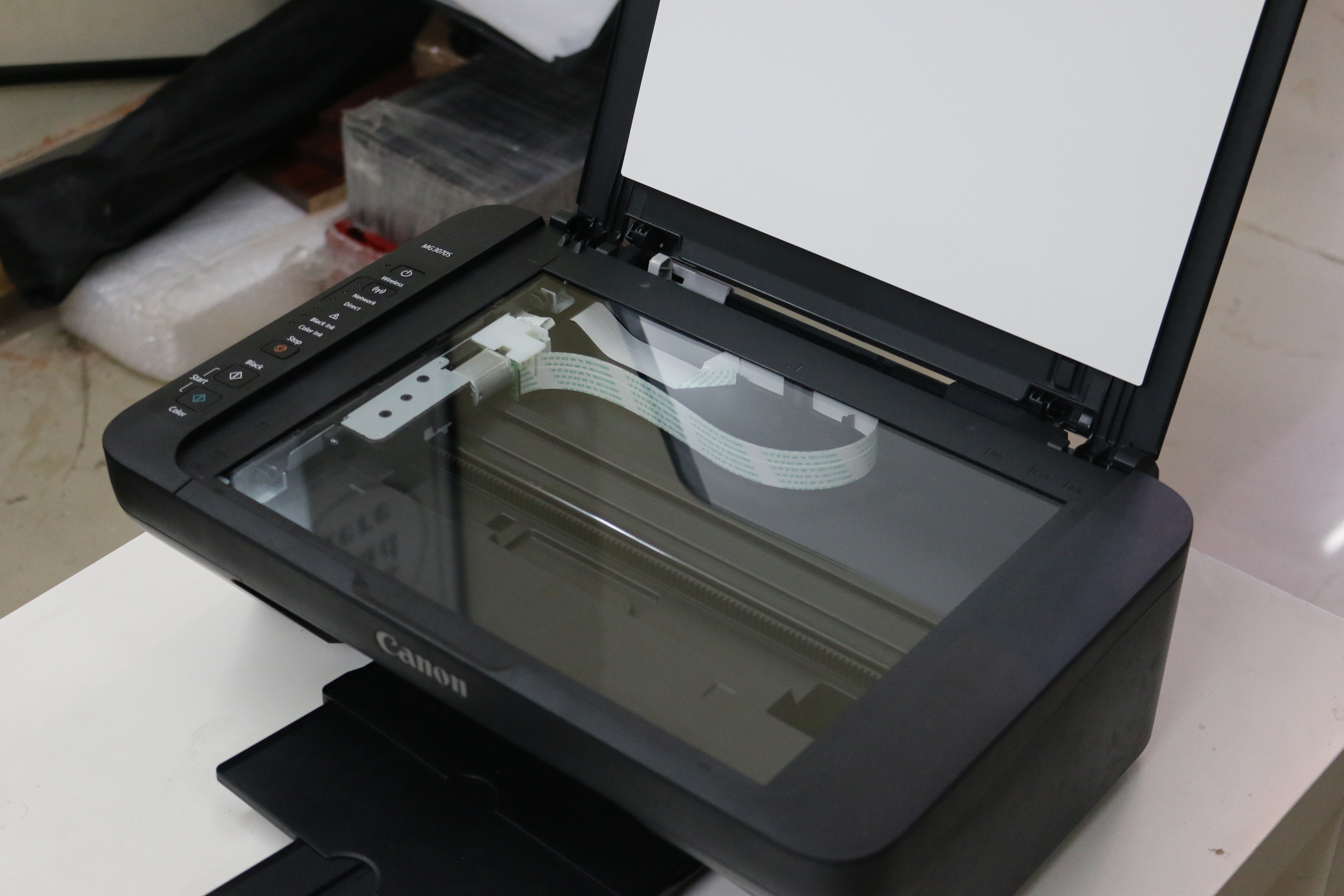 There is a flap on the top with the scanner bed beneath it. The paper tray is at the back of the scanner bed where you can stack up to 60 A4 sheets at a time. The output tray is at the bottom which can be pulled out and extended before printing and then retracted after use. The control buttons are on the left of the scanner flap, which are very convenient to use. All the connectivity ports are placed on the back.