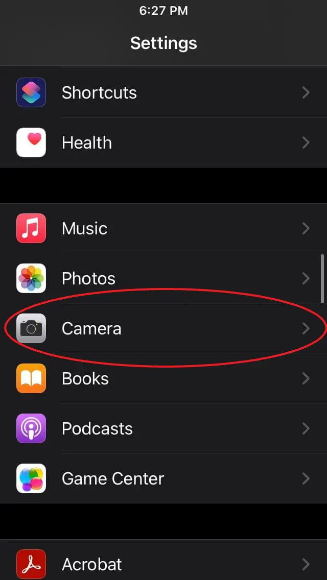 - Please scroll down to the Camera and click on it.