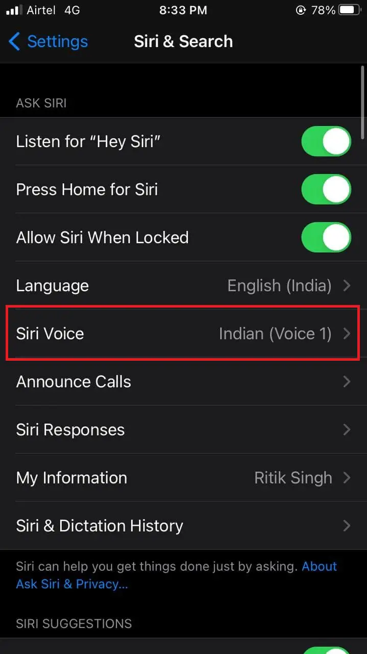 - Here, click on Siri Voice.