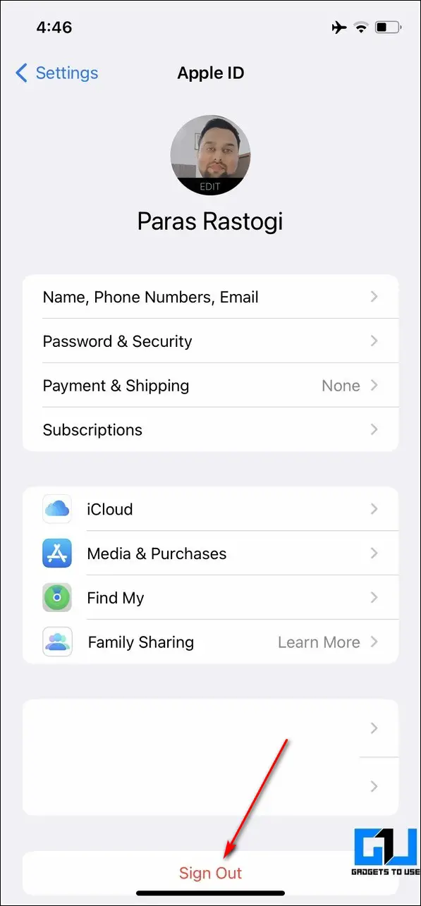 2. To sign out of your iCloud account, tap on the Sign Out button at the bottom.