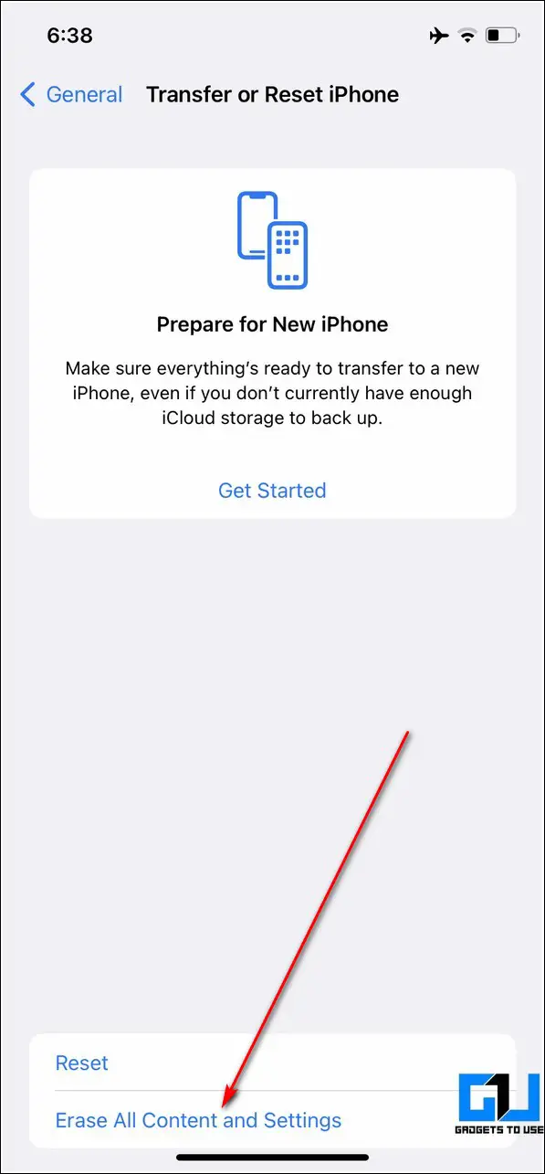 3. Further, press the Erase all Contents and Settings option.