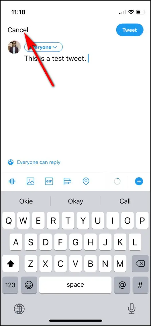 2. Now instead of tapping on Tweet to send, tap on “Cancel” at the top left.