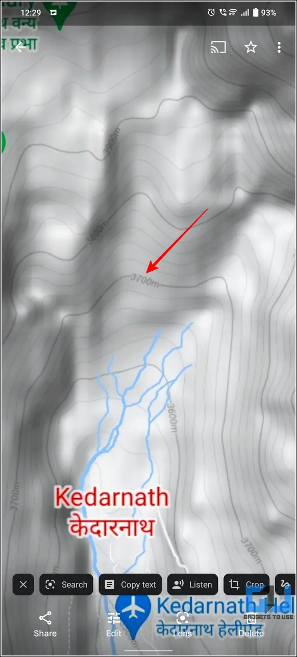 5. Alternatively, you can take a screenshot of the map and zoom on the photo in your gallery app to read the elevation number easily.