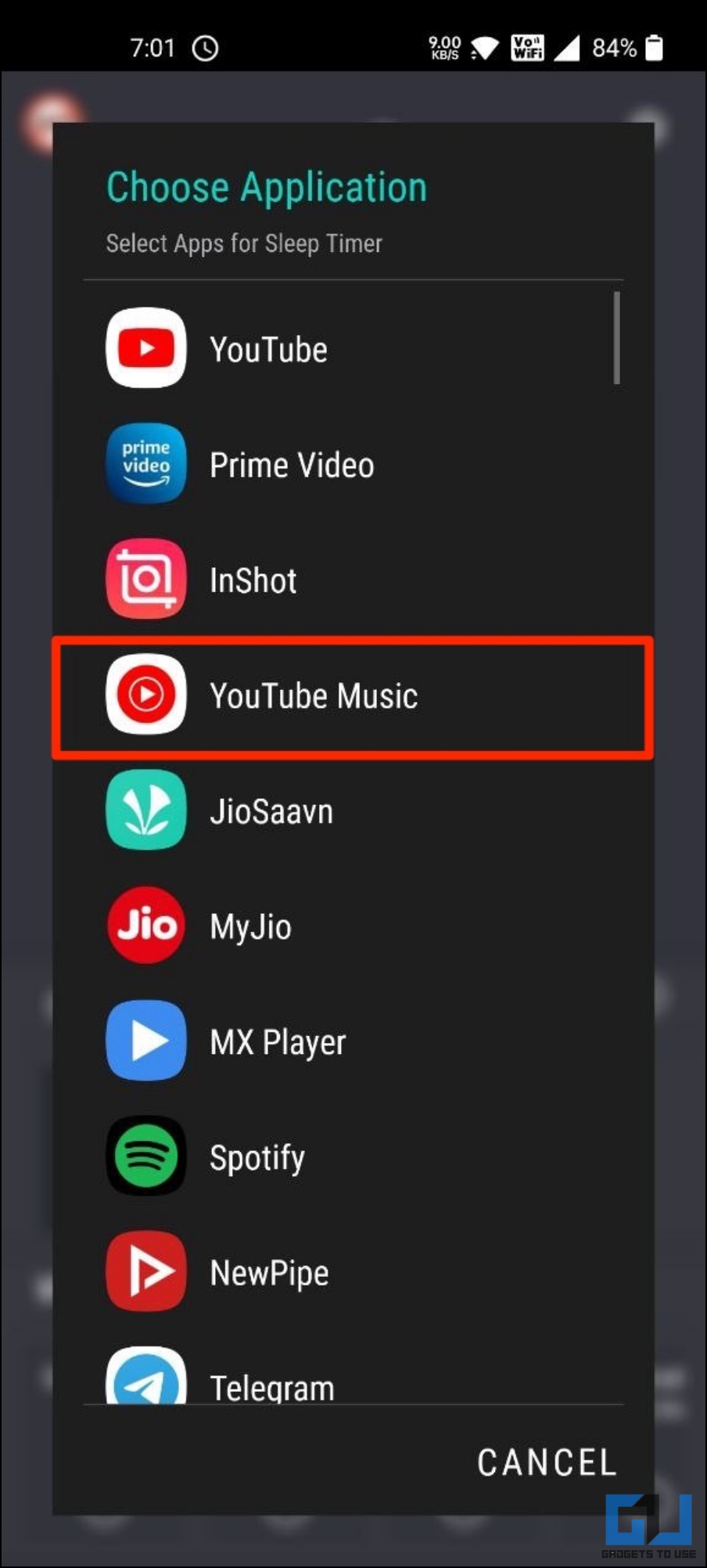 5. Once the timer ends, the app will stop YouTube Music and do as directed.