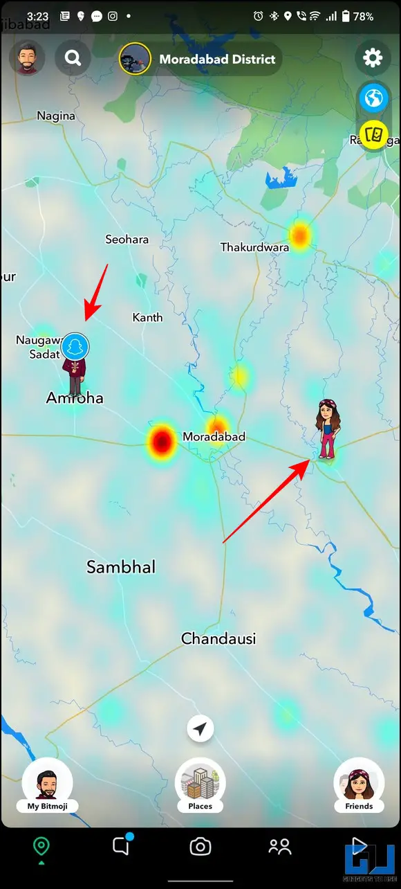 2. The map of your current location will display the exact location of your Snapchat friends as avatars.