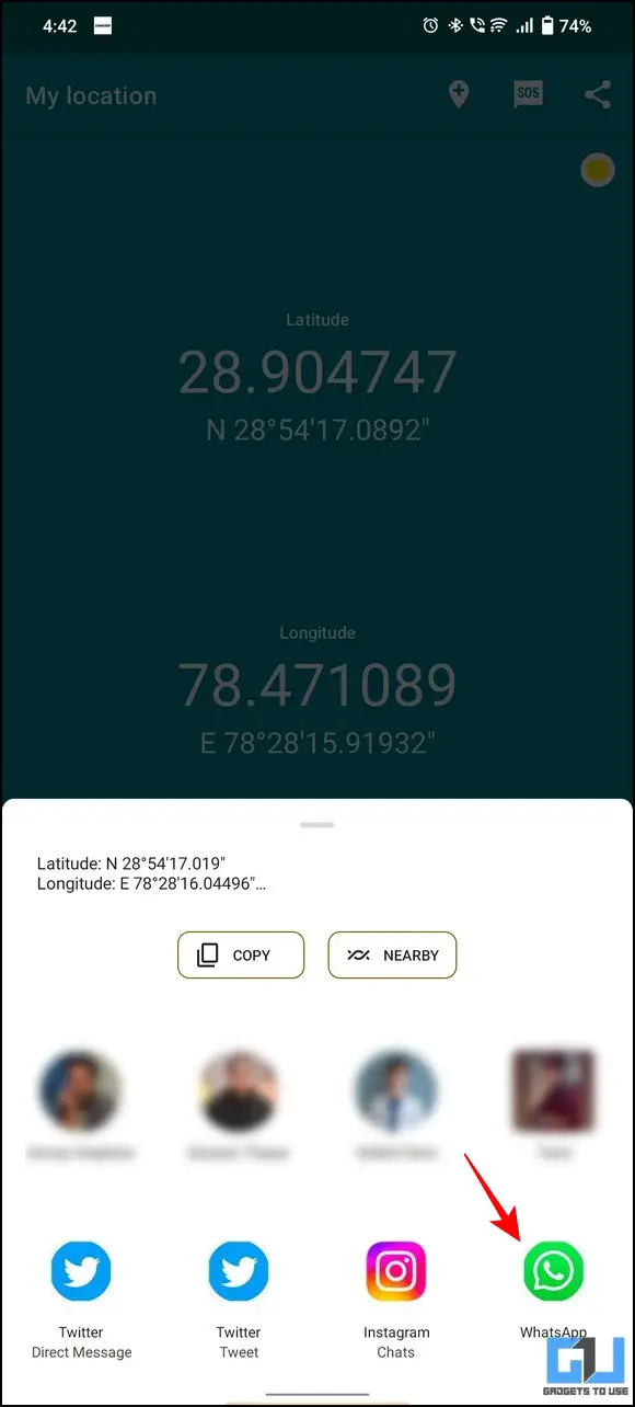 Besides other social media, you can use third-party apps on your or your loved one’s phone to conveniently share their GPS coordinates. ‘My GPS Coordinates‘ app is one such remarkable free third-party app that allows you to share live GPS coordinates with your desired person. Follow these steps to use this app for location tracking: