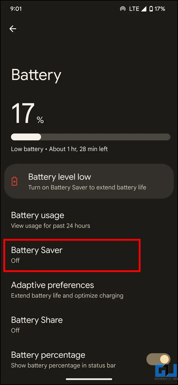 6. Finally, turn on Battery Saver mode to conserve more power by reducing battery usage.