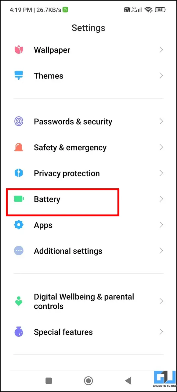 1. Open the Settings app on your Xiaomi device and tap the Battery option.