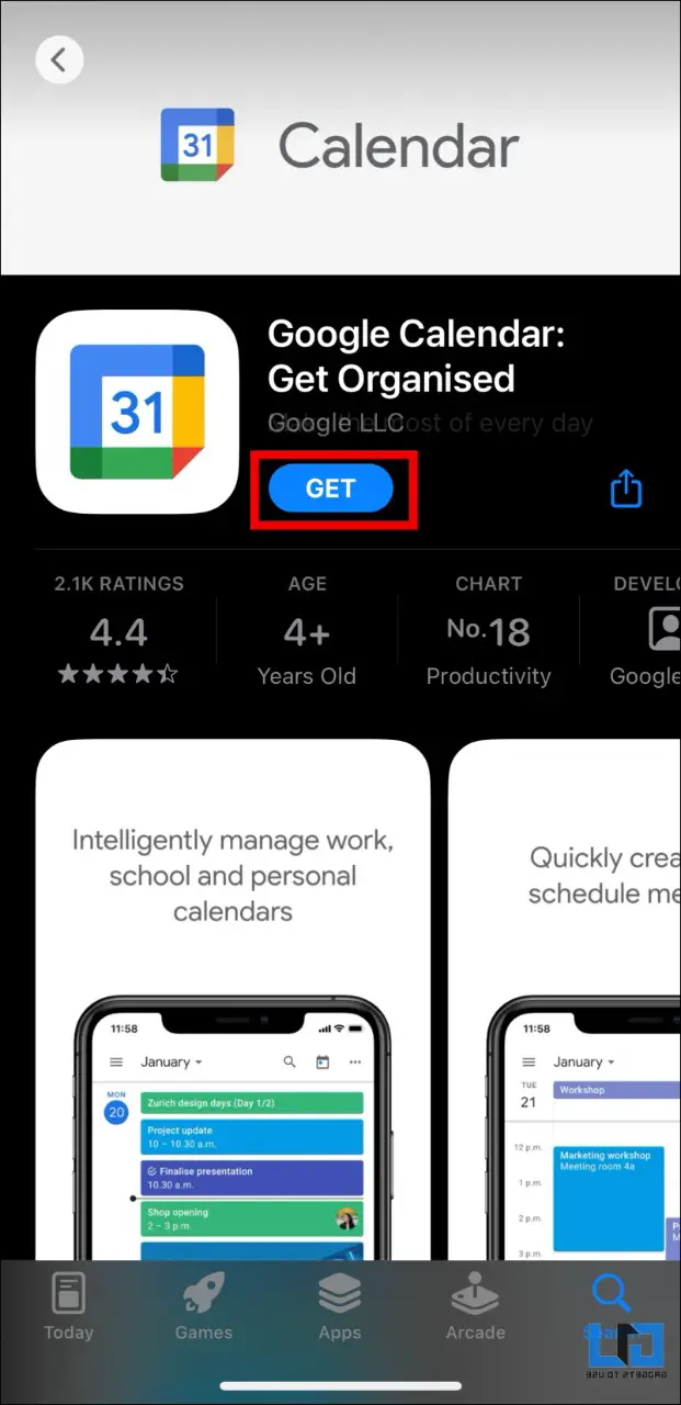 1. Download the Google Calendar app for iOS from the App Store, and launch it.