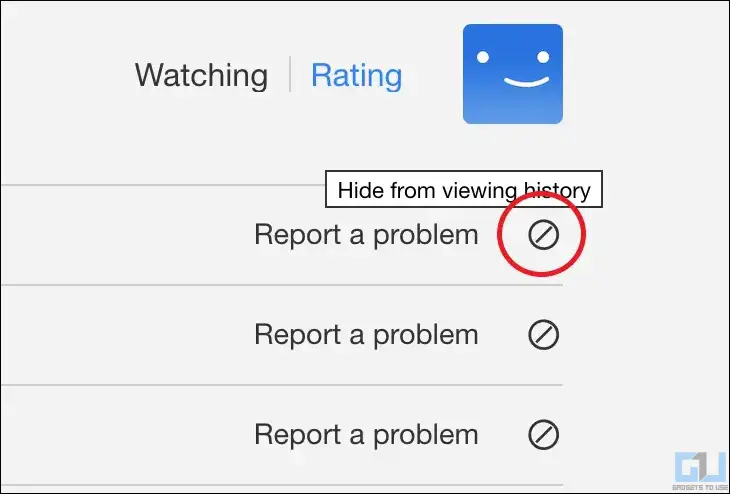 - Then, tap the circle with a line to remove a particular movie or web show from your watch history.