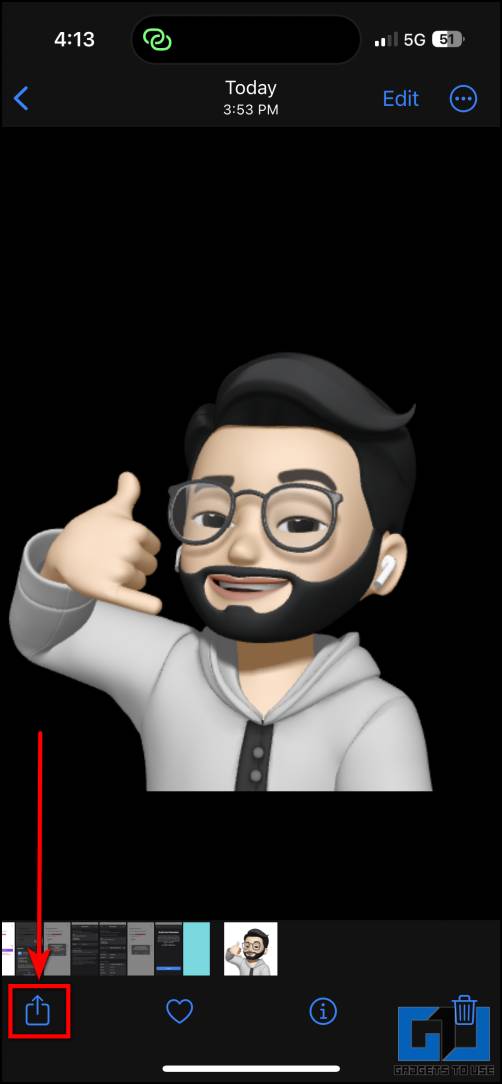 1. Open the Memoji sticker image on your iPhone and click on the share icon.