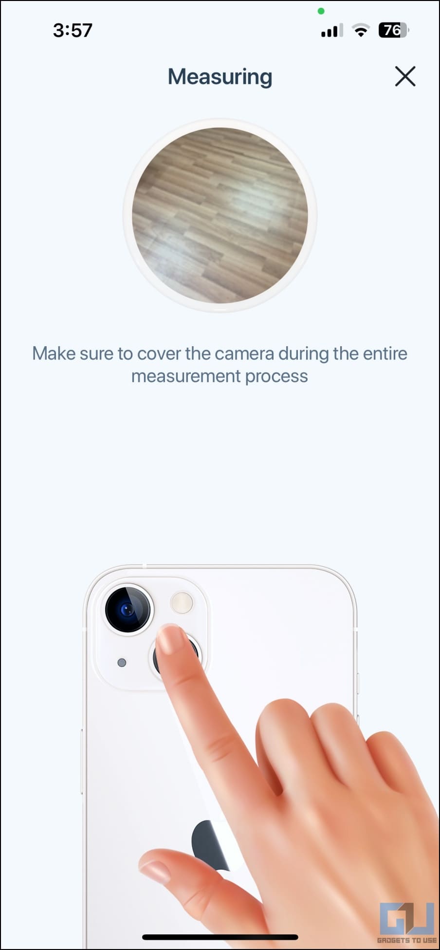 6. Allow the camera access, follow the on-screen instructions, and place your finger on the rear camera. Ensure you’re relaxed with your arms resting on the table; the phone shouldn’t have any case.