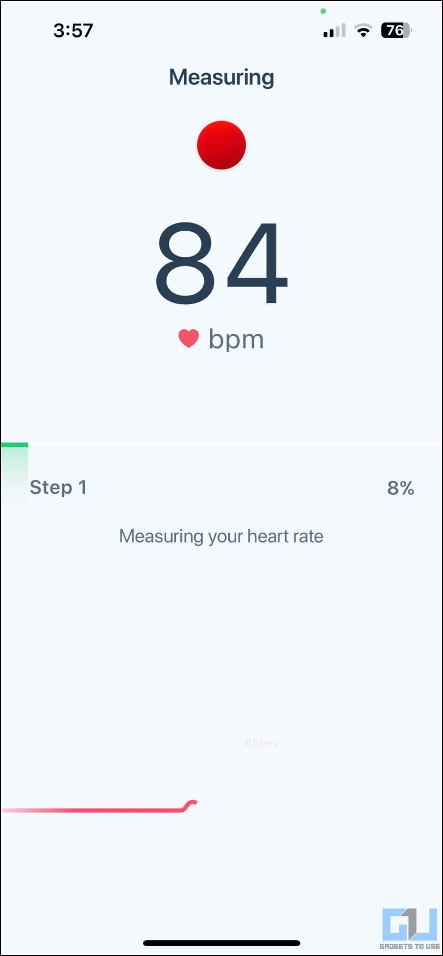 5. Wait as the app continues to monitor your heart rate and the intervals between your heartbeats to determine HRV.