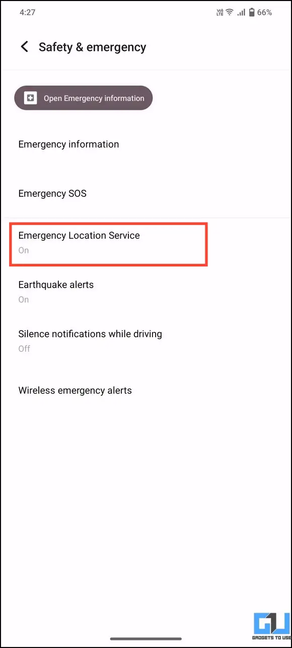 1. Open Emergency Location Service under your Android phone’s Safety & Emergency settings.