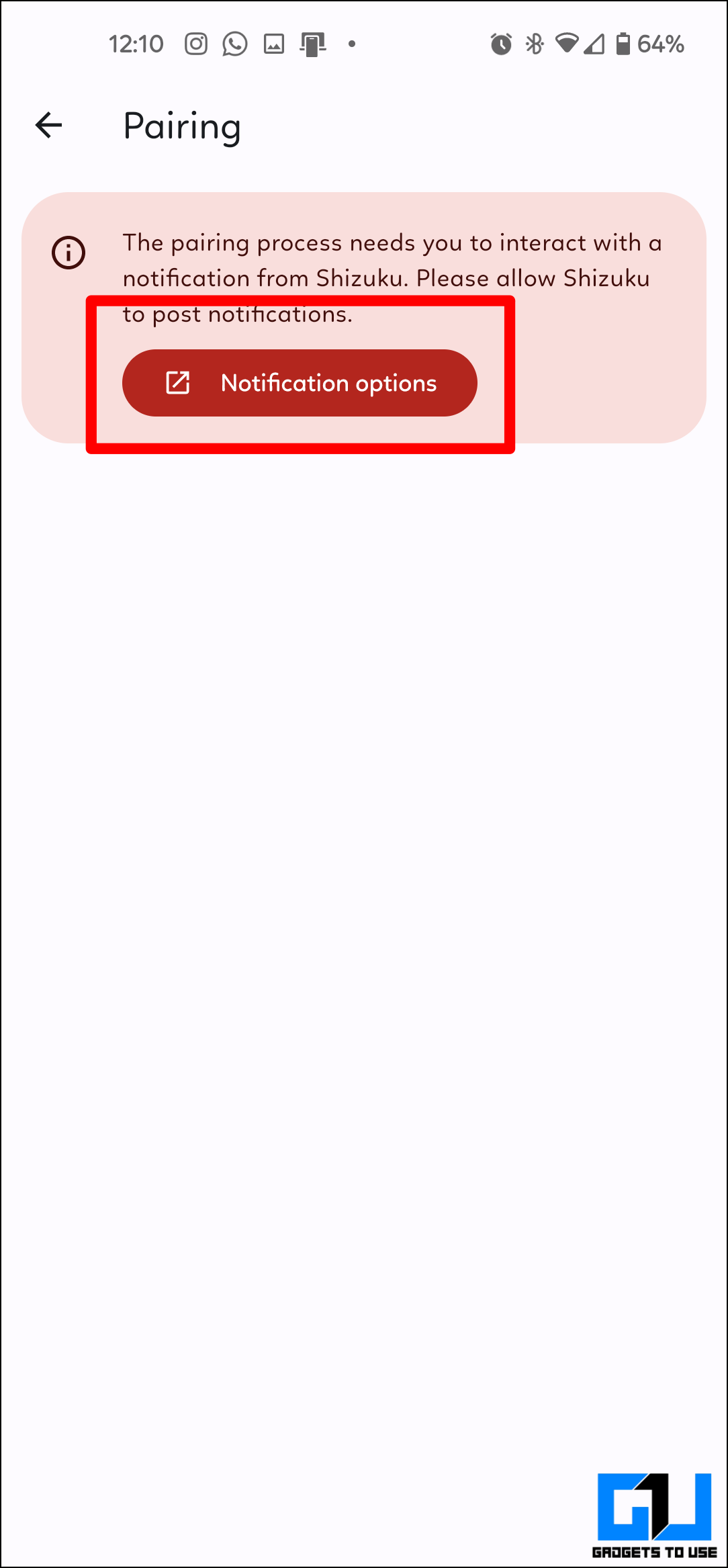 11. A “Wi-Fi pairing code” will appear on the screen. You must enter this code in the Shizuku notification at the top.