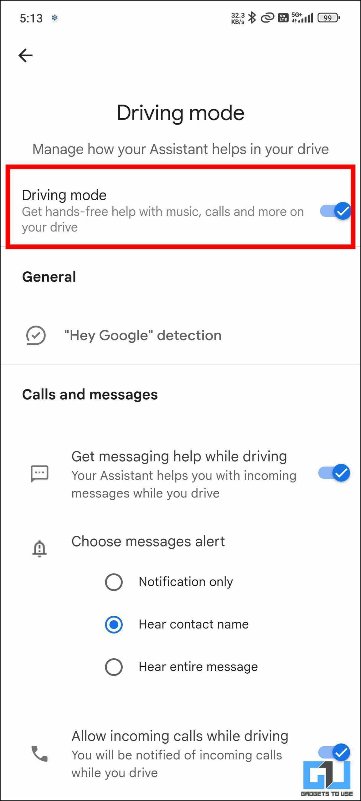 You can also ask Google Assistant to open Assitant’s Settings and it will directly take you to Assistant’s settings. You do get to customize the driving mode experience. You can choose your own messages alert if you want notification only or you want to hear the contact name or you want to hear the entire message. You can also do this if you do not want to turn off your Driving Mode.