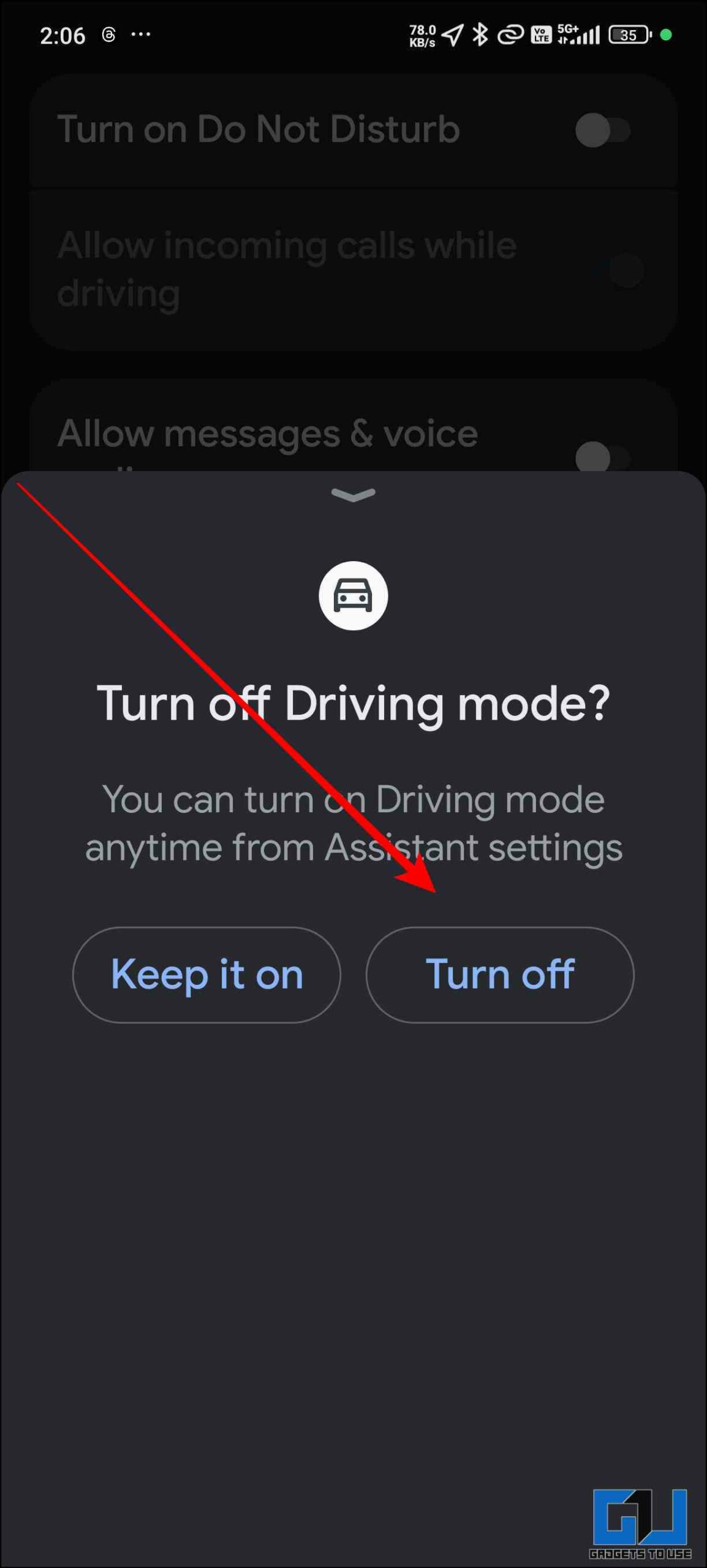4. Click on Turn Off Driving Mode and it will ask for confirmation click on “Turn off.”