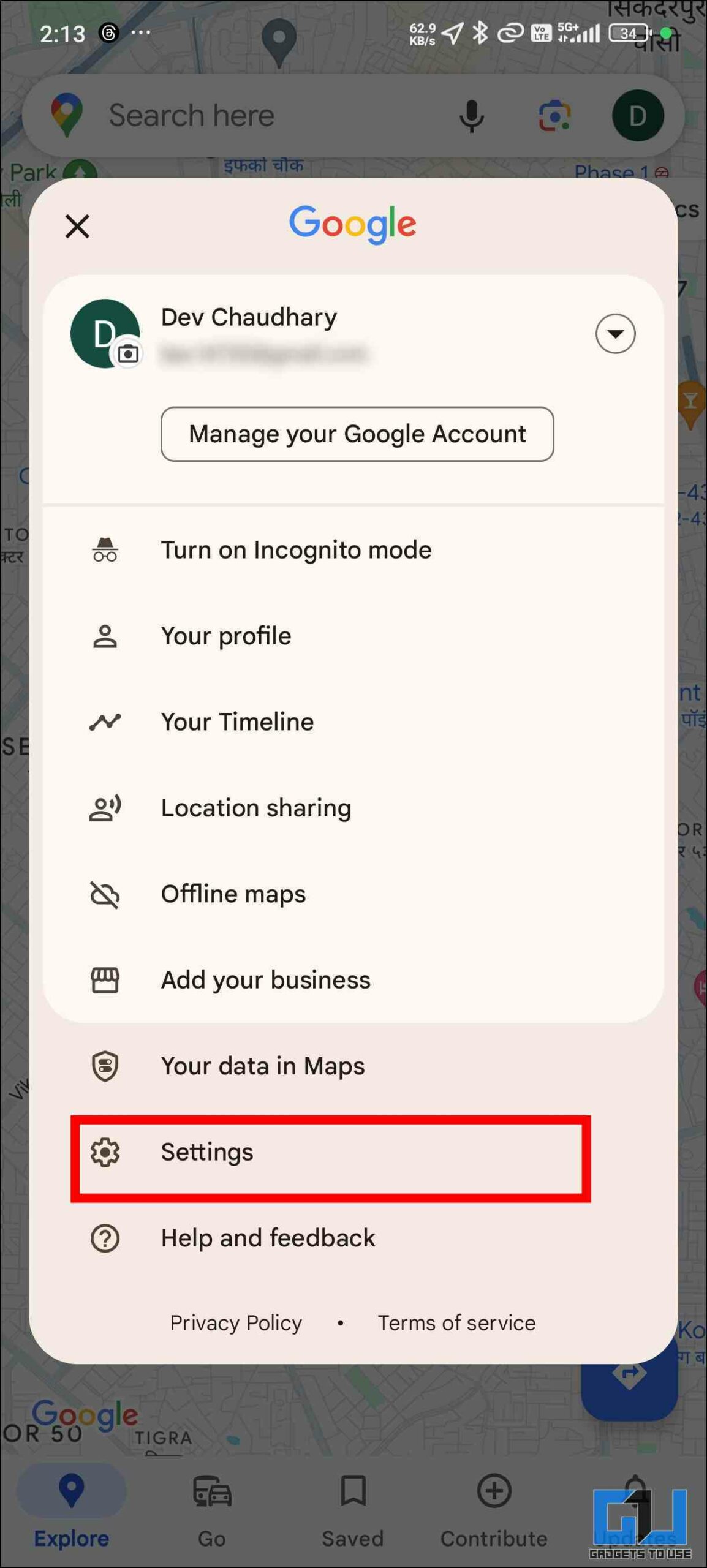 1. Open the Google Map App, and then click on your Google profile on the top right of your screen.
