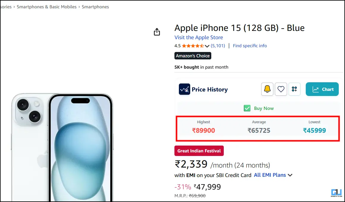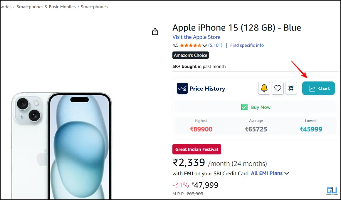 The Price History Extension helps you see what’s behind the curtain, meaning you can see the pricing history of any product on Amazon and Flipkart. This will help you to identify real deals and skip the inflated prices that are posed as discounted deals. You can even see the lowest price at which that product is marked and set an alert for that particular price. Here are the steps for the same.