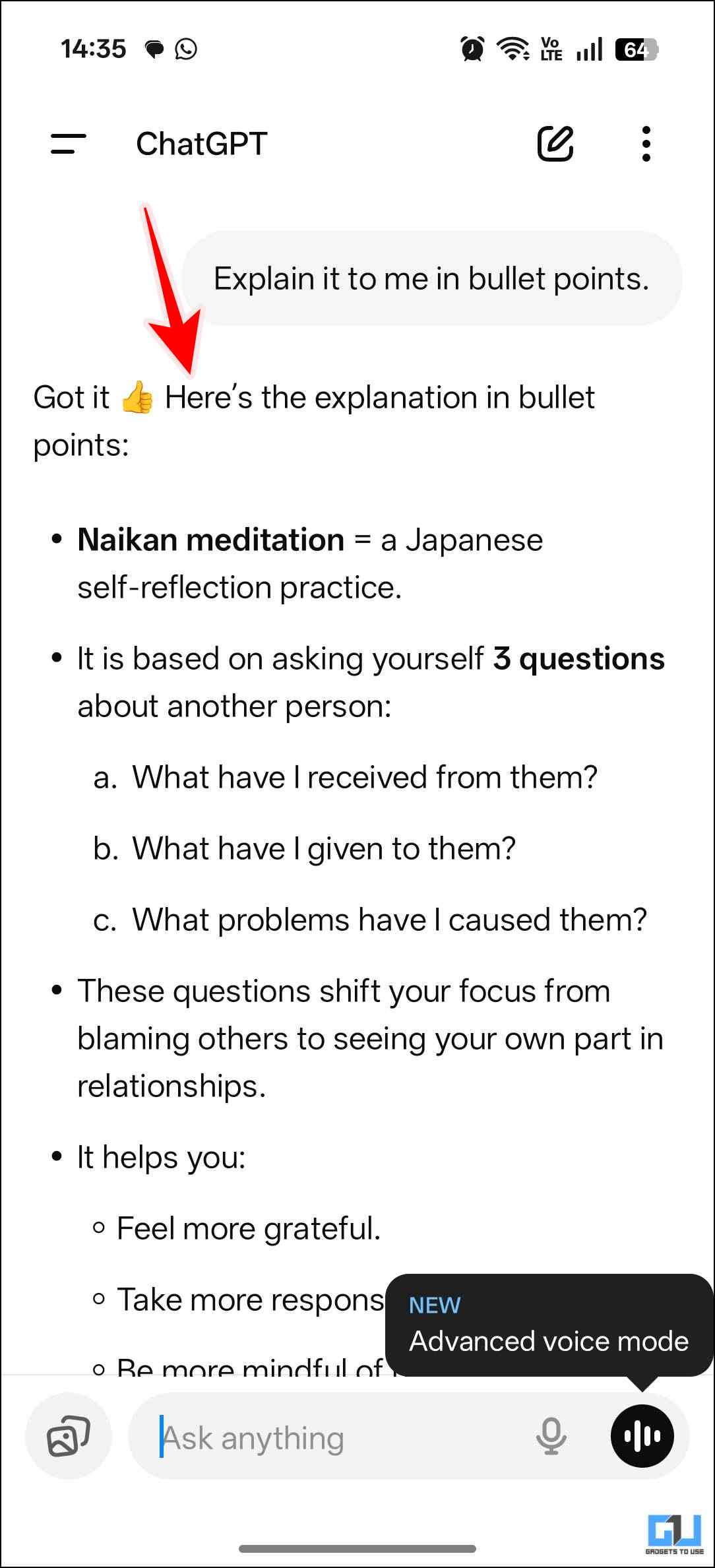 4. If this is not helpful, you can access the Advanced voice mode to have a further conversation in which you can discuss your doubts.