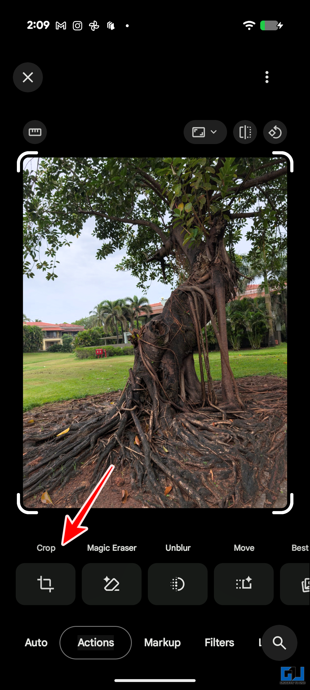 3. Then click on Crop, and from there click on Auto-frame on the top right of the screen.