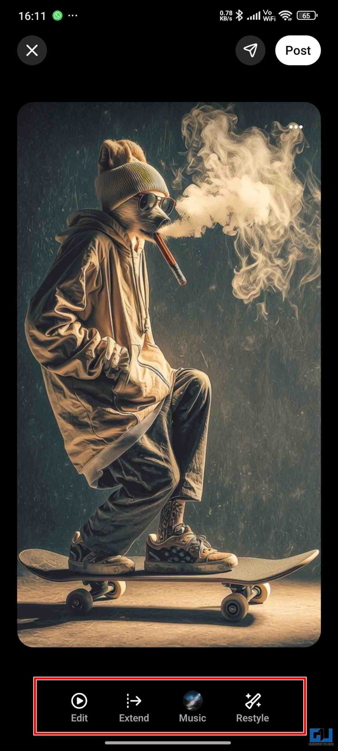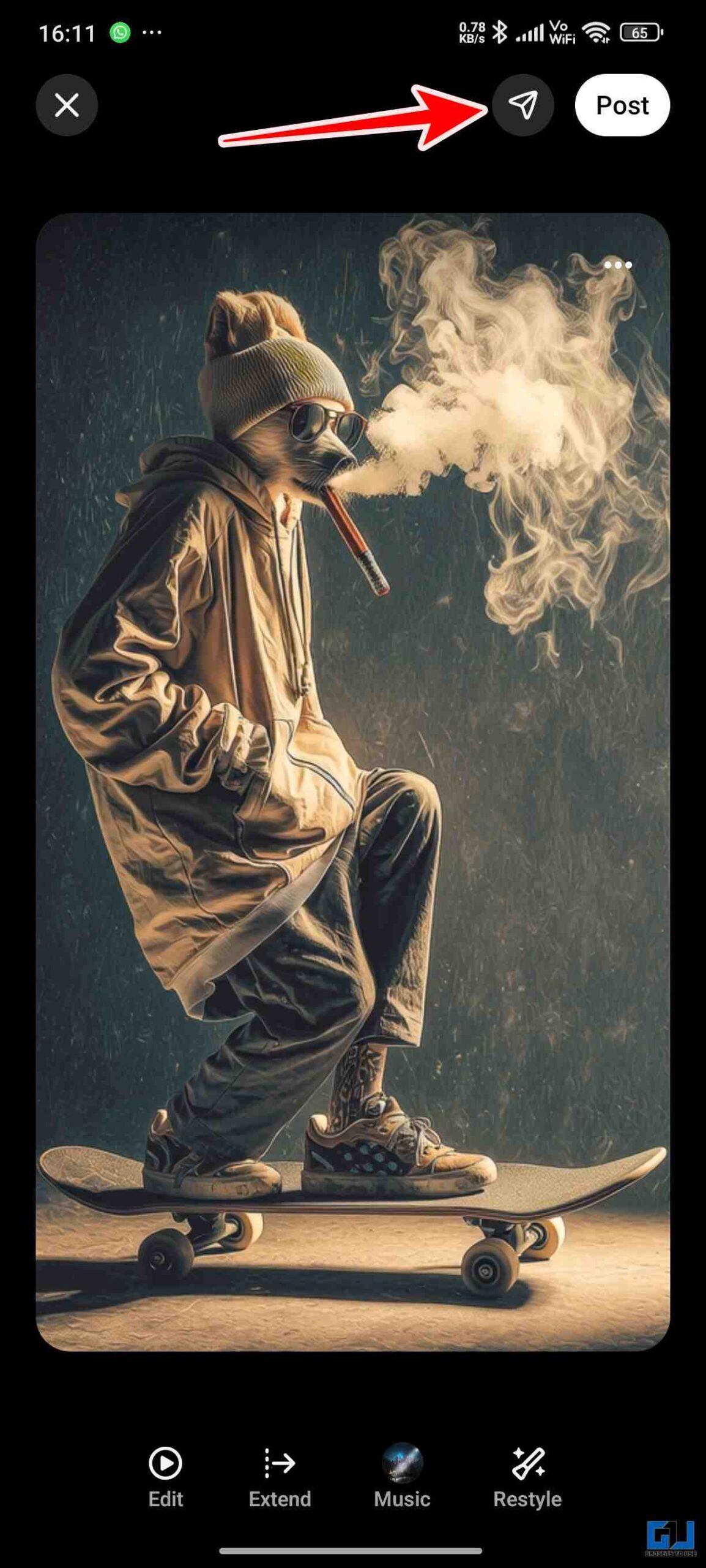 Yes, you can either save and then post it as a reel, or you can directly add the AI video to your Instagram story. Simply tap on the Share button and then choose the option to Add to Instagram Story.