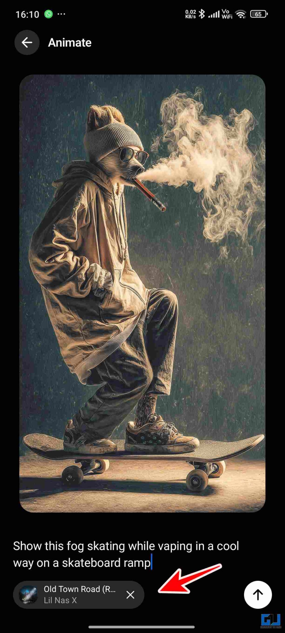 4. Enter your prompt into the text box below and then tap on the Blue arrow on the bottom right.