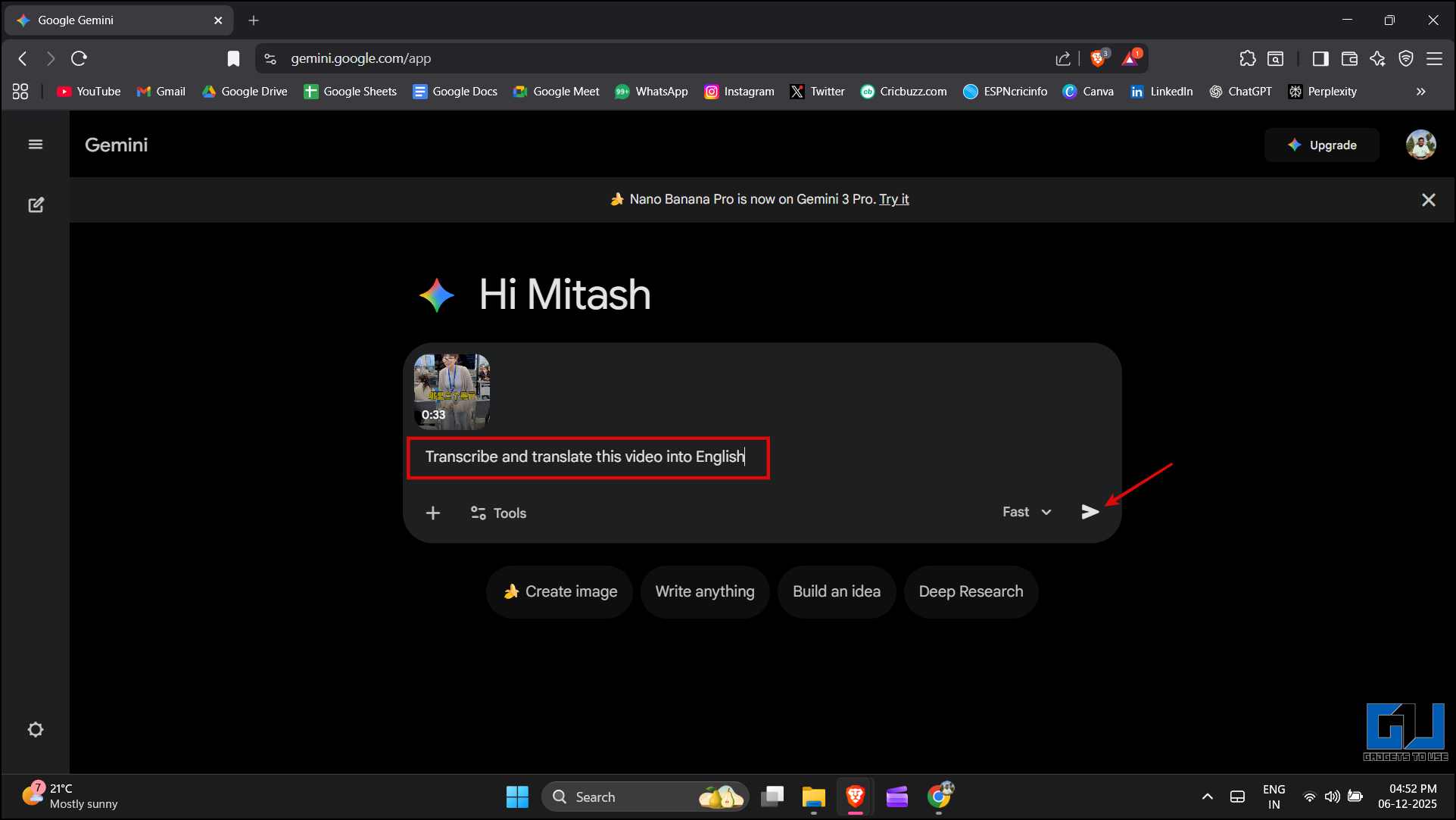 Once you have downloaded the video or audio file, you can transcribe and translate it into your desired language. The following are the steps to do it using Gemini.