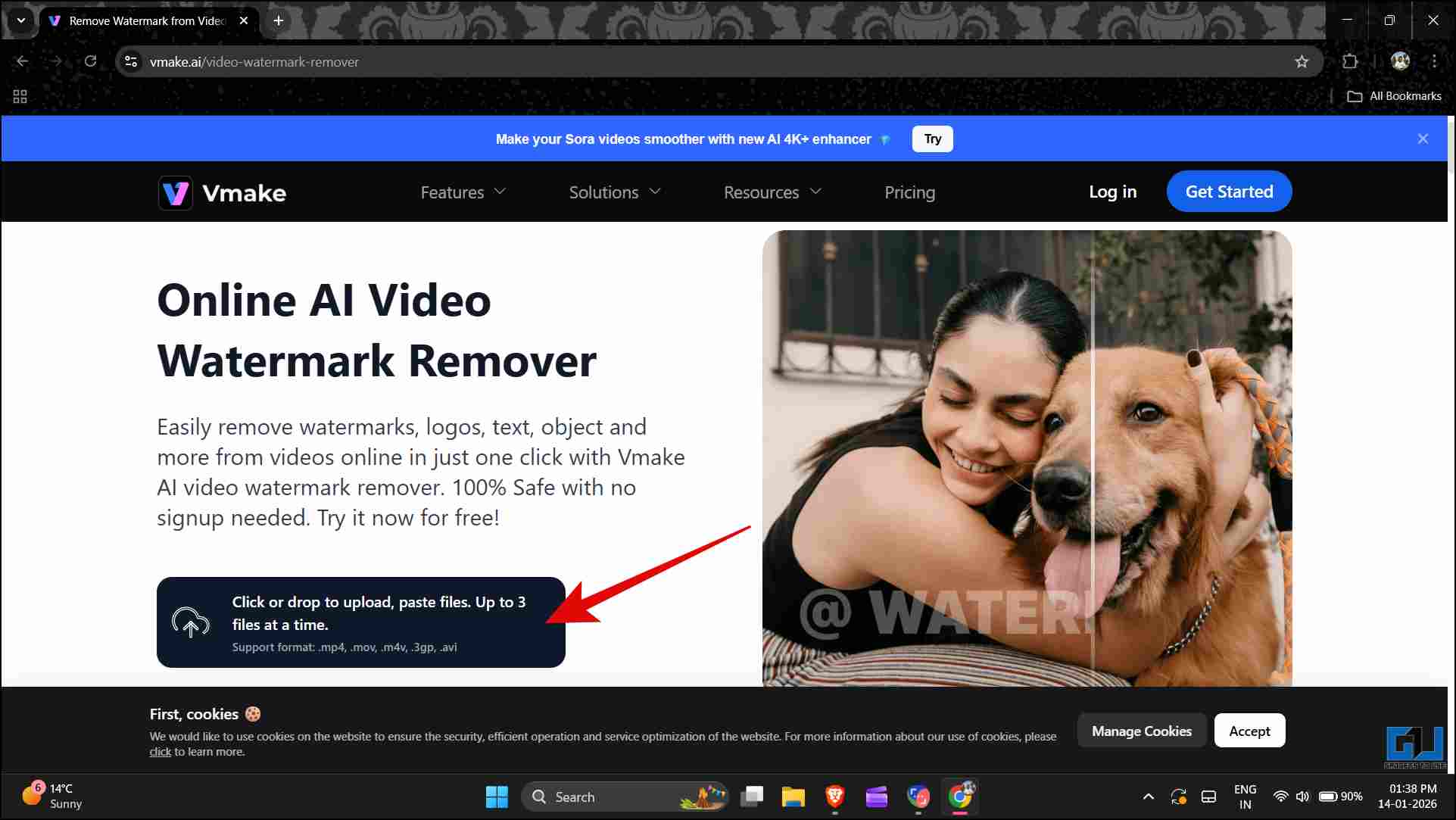 - Open the vmake websiyte and click on the option to upload the video with a watermark.