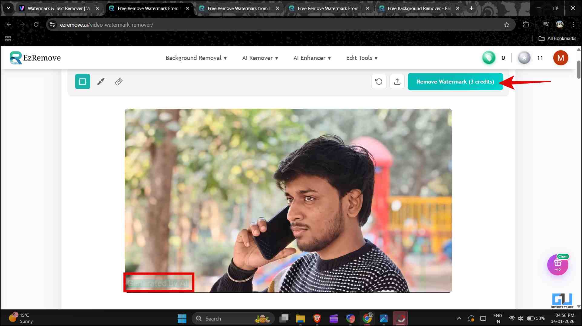 2. After the video is uploaded, select the watermark area and click the “Remove Watermark (free)” option.