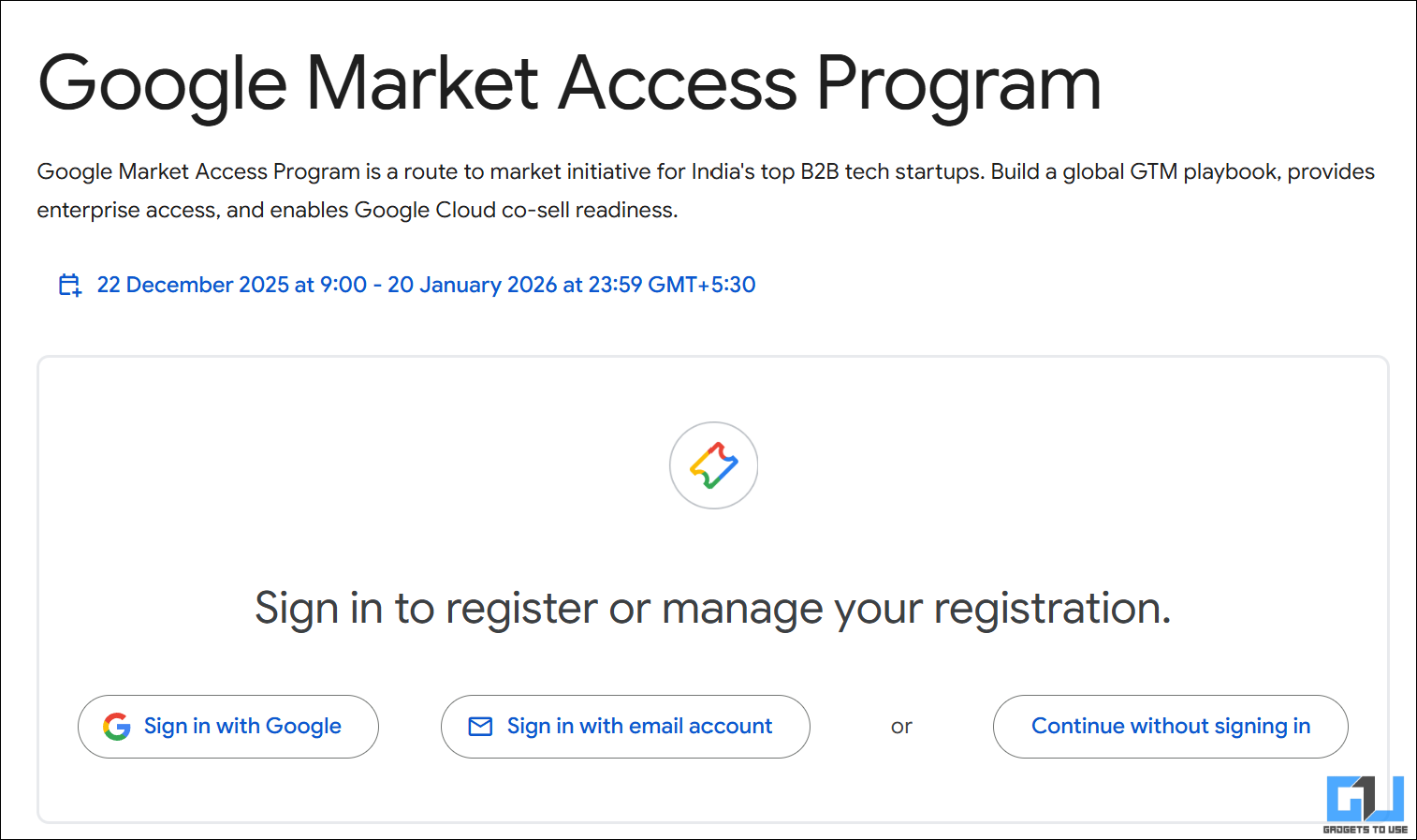 1. Open the registration page of the Google Market Access Program.